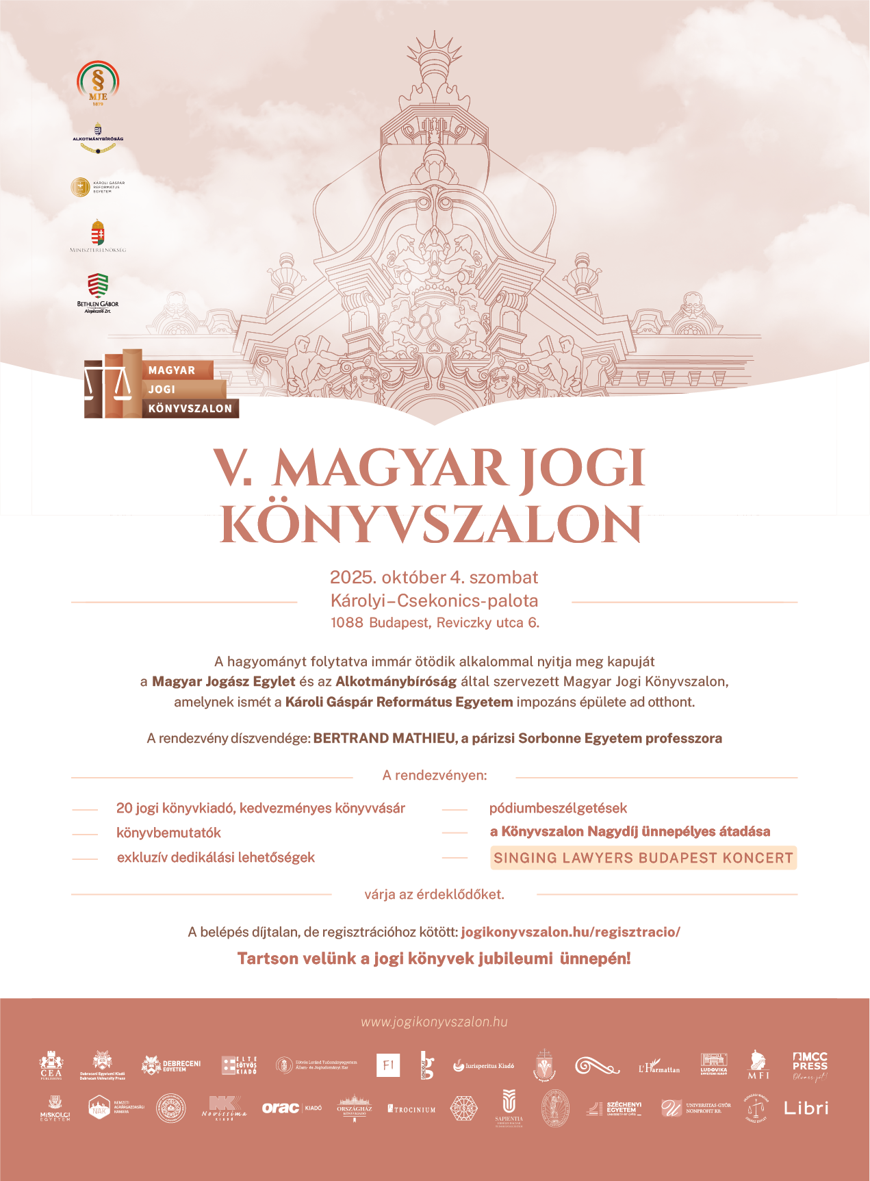 A Gondolat Kiadó idén is részt vesz a Magyar Jogi Könyvszalonon 2025 október 4-én, szombaton a Károlyi-Csekonics Palotában (1088 Budapest, Reviczky utca 6.)
